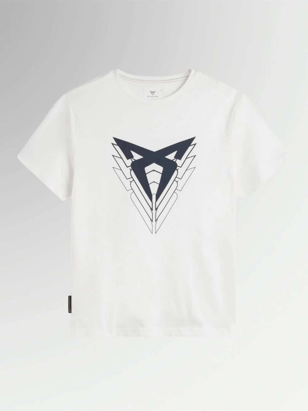 Unisex white short-sleeved T-shirt with a regular fit and crew neck. It features a large CUPRA logo on the chest, clearly showing your team allegiance. Made from 100% organic cotton, it's comfortable and durable. The water-based print ensures a long-lasting, soft-to-the-touch finish. Perfect for a casual look with attitude.